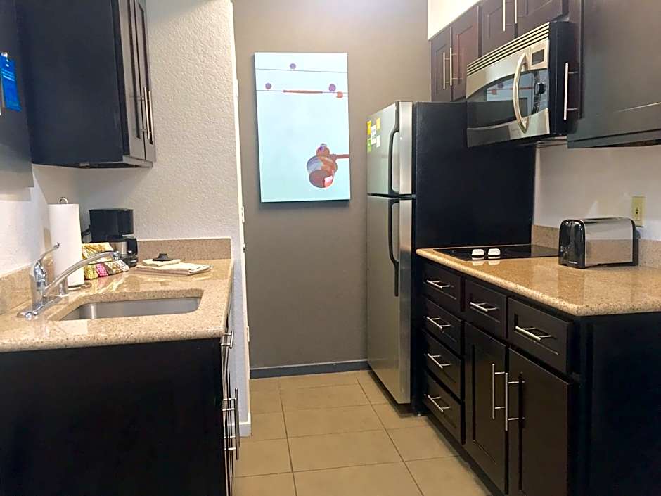 This 1-bedroom suite includes a separate bedroom, a private bathroom and a flat-screen cable TV. It includes a spacious closet and a living area with an over-sized sofa bed. This suite also features a fully-equipped kitchen.